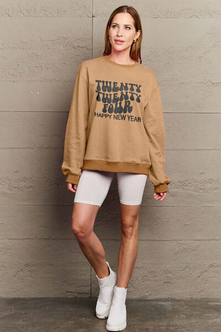 Simply Love Full Size TWENTY TWENTY FOUR HAPPY NEW YEAR Dropped Shoulder Sweatshirt